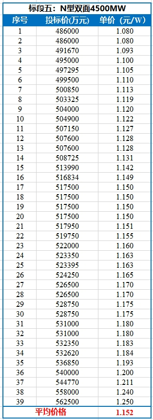 共41家企业参与了此次投标,各标段开标结果如下表所示。值得注意的是,P型最低投标价格已经跌破1元/W!